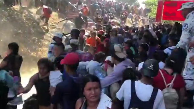 Enfrentamientos entre elementos de la Guardia Nacional y los migrantes que cruzaron el Río Suchiate (frontera entre Guatemala y México). Hasta el momento no hay cifra de heridos, ni de detenidos