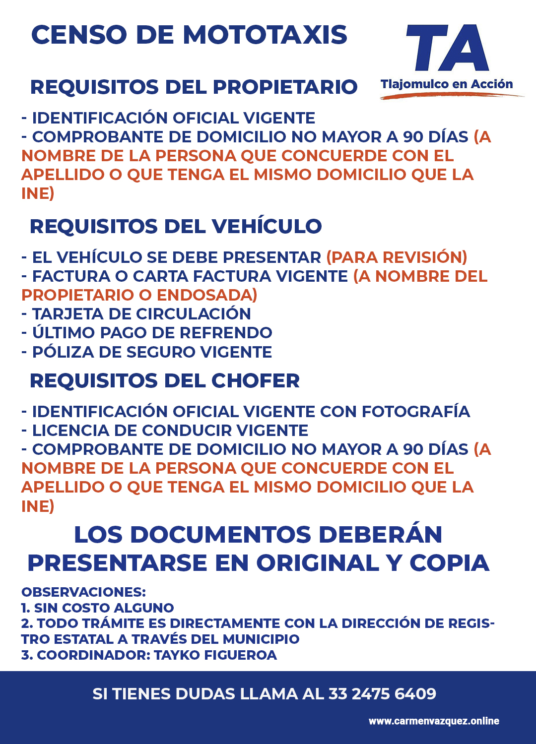 Llega regularización de mototaxis a Tlajomulco, la Dirección de Registro Estatal a través del Municipio censa para ser candidato, es abierto sin costo y personal.
